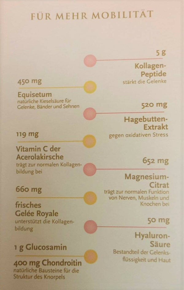 Verzehrempfehlung: Morgens 1-2 Ampullen zum Frühstück - entweder pur oder verdünnt mit einem Glas Saft. Gegenüber den Inhaltsstoffen empfindliche Personen sollten sich bitte vorab informieren.